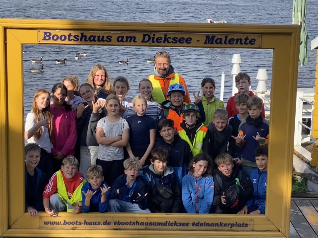 Mit viel Vorfreude sind vier unserer sechsten Klassen zu ihrer Klassenfahrt nach Malente aufgebrochen. Auf dem Fahrrad ging es von Plön aus durch den spätsommerlichen Wald – das Wetter hielt, und zwischendurch lachte sogar die Sonne. Nach dieser schönen Tour war die Stimmung am Ziel ausgelassen: Es wurde gespielt, gelacht und anschließend die erste Rallye durch Malente in kleinen Gruppen gestartet.