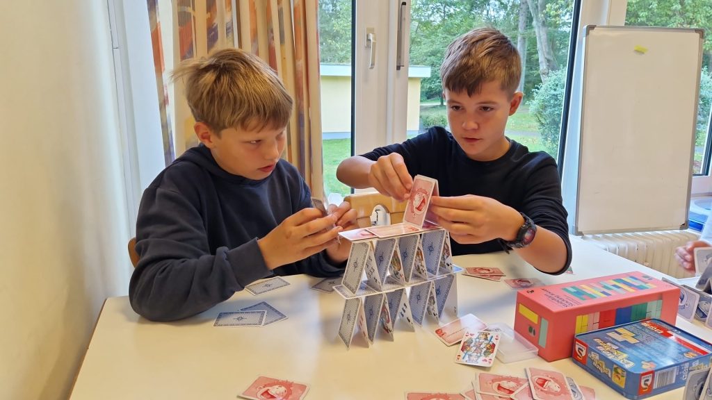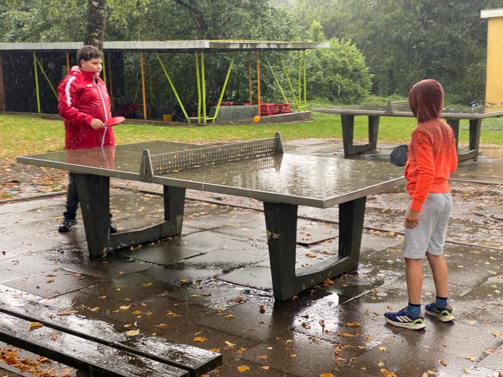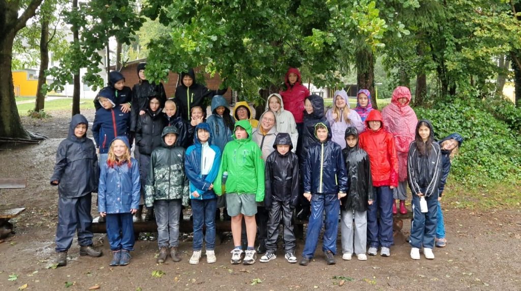 Regen, Regen und noch mehr Regen – nur ganz selten ein paar trockene Momente. Trotzdem ließen sich die Kinder die gute Laune nicht verderben. Viele Aufgaben und Spiele fanden im Haus statt, doch auch draußen waren sie unterwegs: entweder tropfnass oder genau in einer kurzen Regenpause. Am Ende des Tages gab es vor allem eins – viele glückliche Kinder!